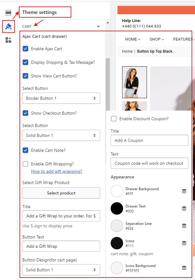 Please make the necessary settings as required for your store, which will be applied to the cart drawer and a few of them for the cart page.