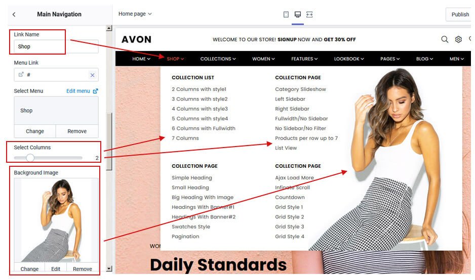 While you are working with Avone theme and creating pages, you need to publish Avone theme for a moment to select Avone theme templates.