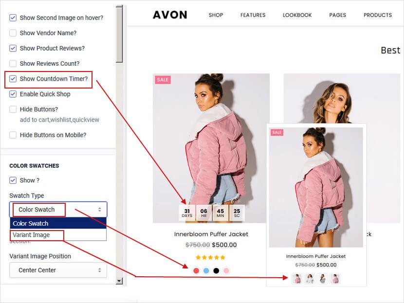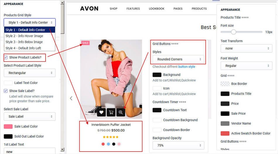 With Avone v5.0, Featured product section is available with blocks that can be moved within a section to alter the layout of the section itself.