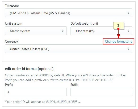 There are 2 options: Without Currency, Ex: $10 and With Currency, $10 CAD