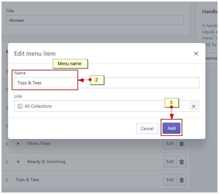 Go to Store Admin >> Online Store >> Navigation >> Click Add Menu button