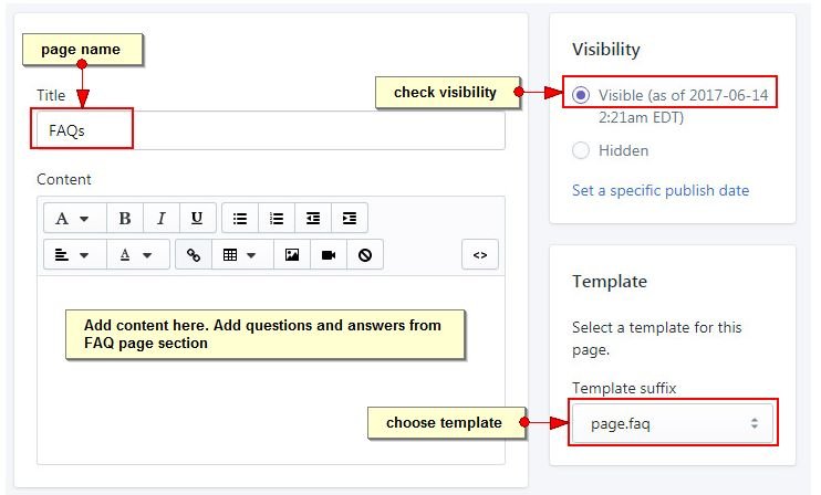 Go to Store Admin >> Online Store >> Customize >> Select FAQs from top dropdown >> Click FAQs Page section