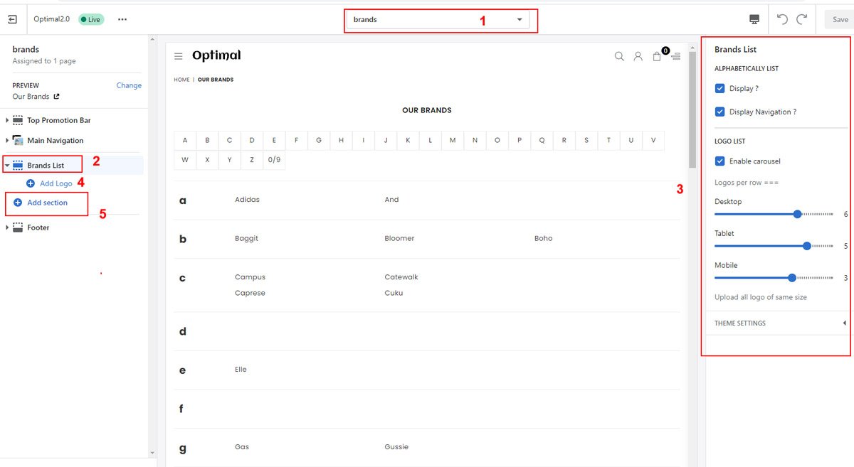 Go to Online Store β> Customize β> Home page β> Add Section β> Logo List