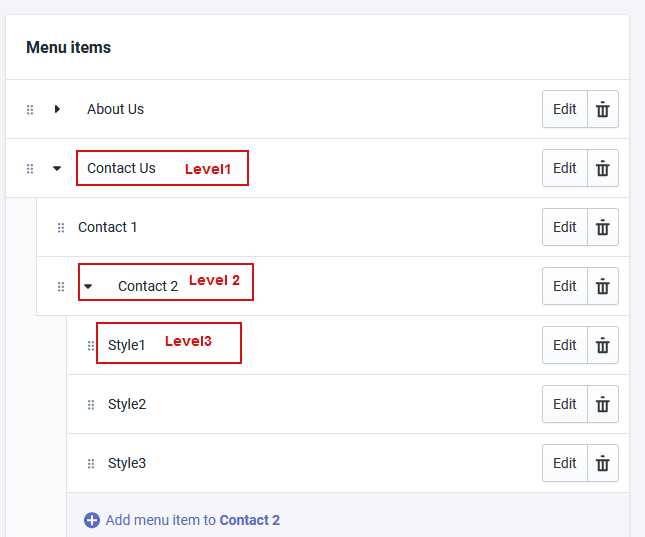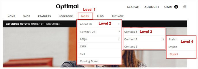 Online Store -> Navigation -> Add Menu with Sub Menu Items As display below ( below screenshot is only for reference )