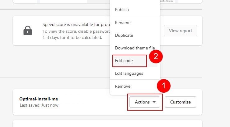 Now Go to Optimal theme which you just uploaded. Click three dot icon β> Edit Code