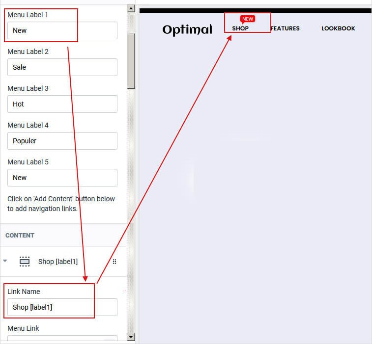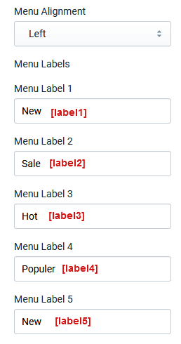 Set Menu Label 1 to Menu Label 5 as required