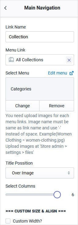 Go to Online Store β> Customize β> Sections β> Main Navigation β> Add block β> Add MM Top Image Columns