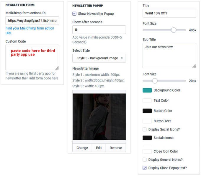 In Theme Settings, Click Newsletter
