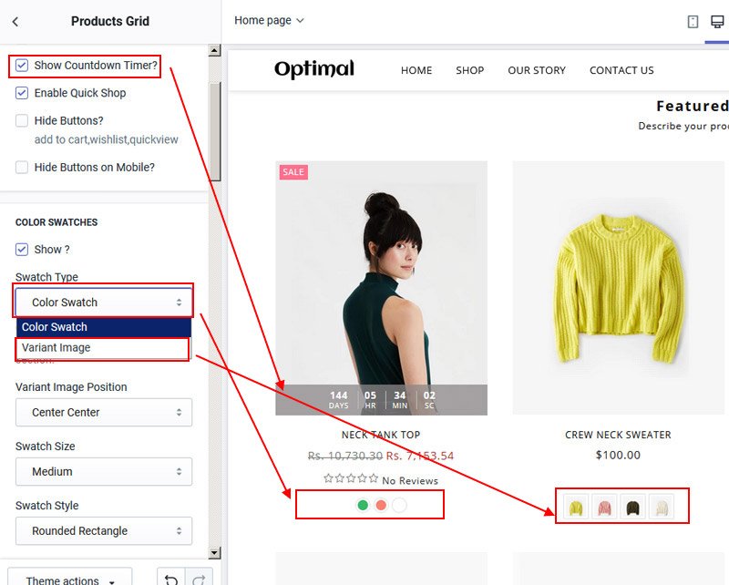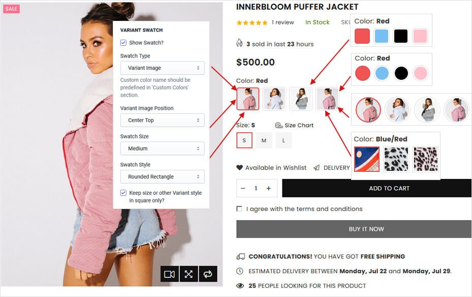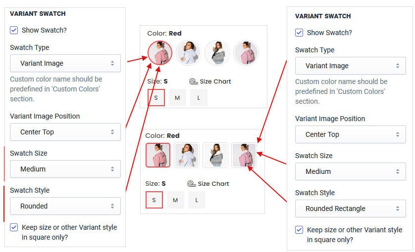 There are many styles to display product swatches