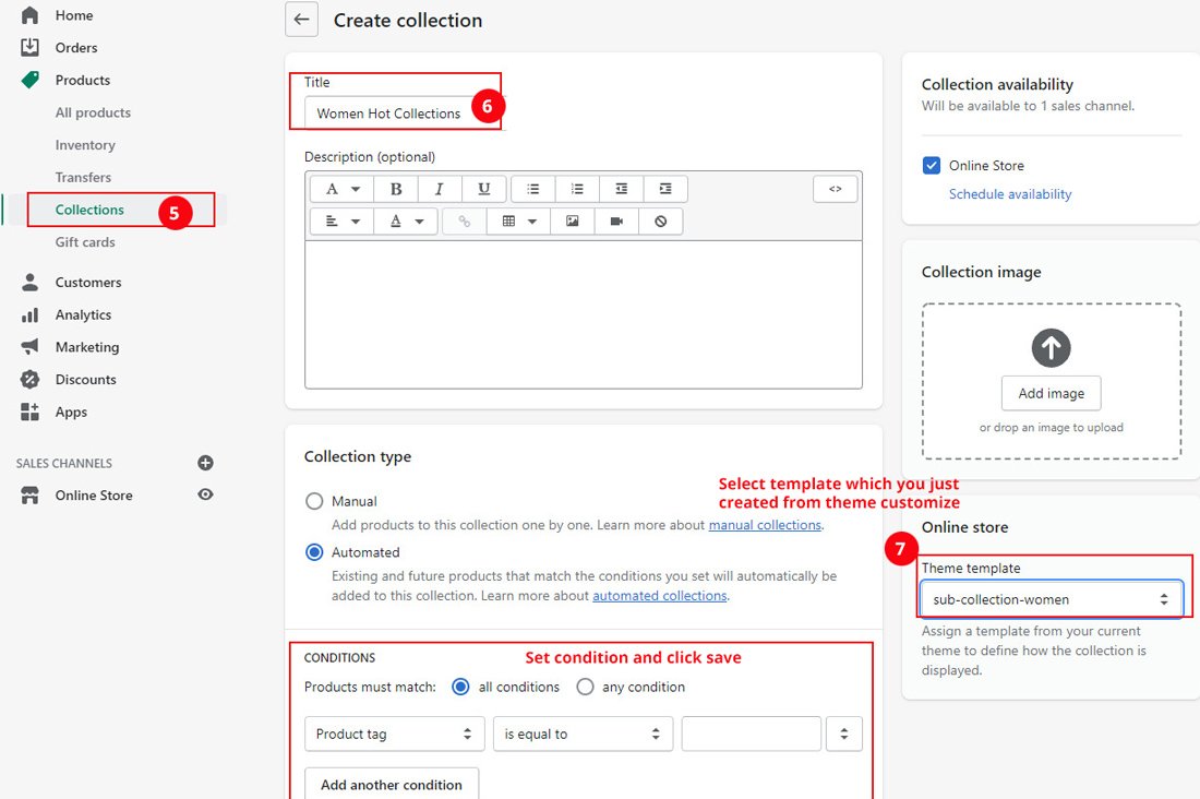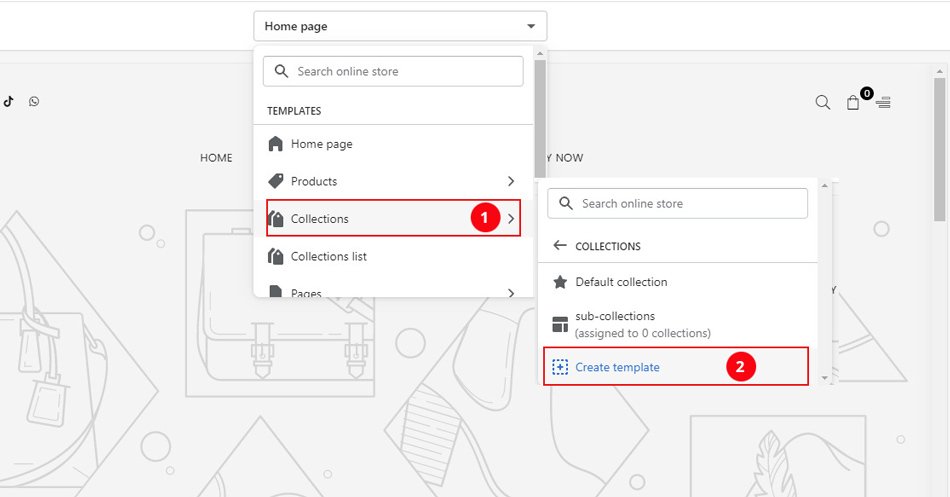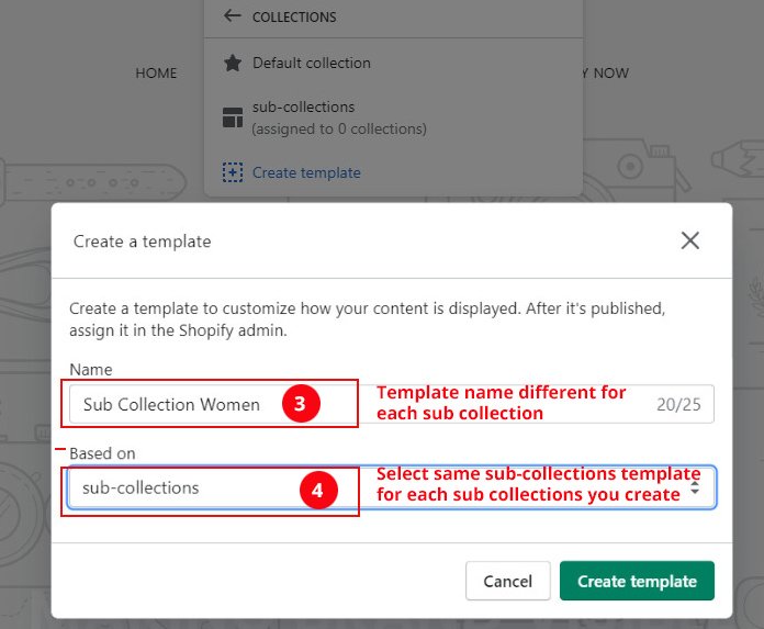 Go : Online Store β> Click Customize β> Open the drop-down menu at the top of the page β> Collections -> Select sub collection template which you created in step 2