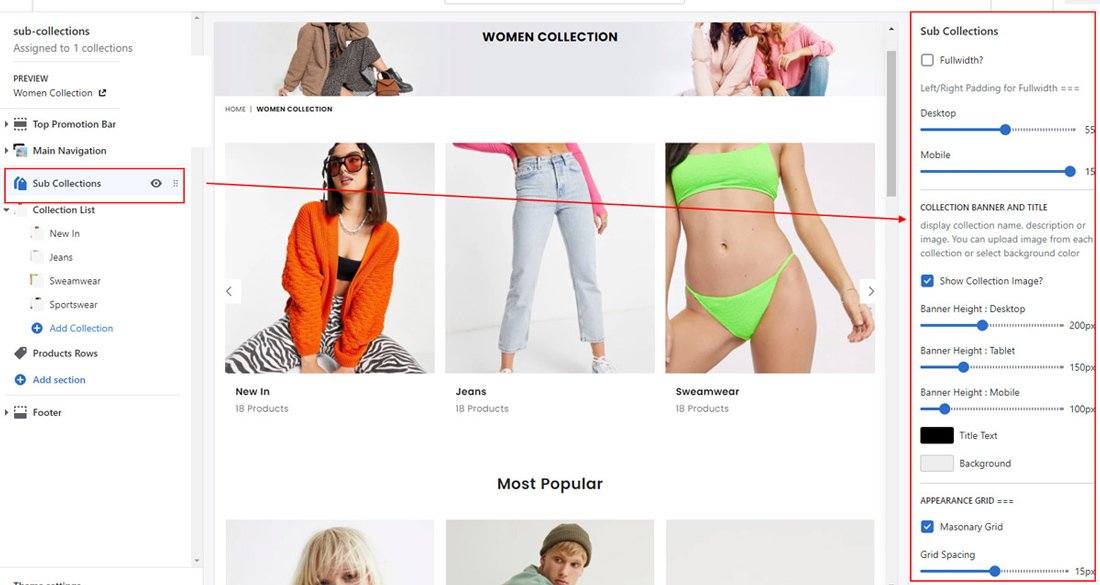 Click on Sub Collections from left sidebar to customize look