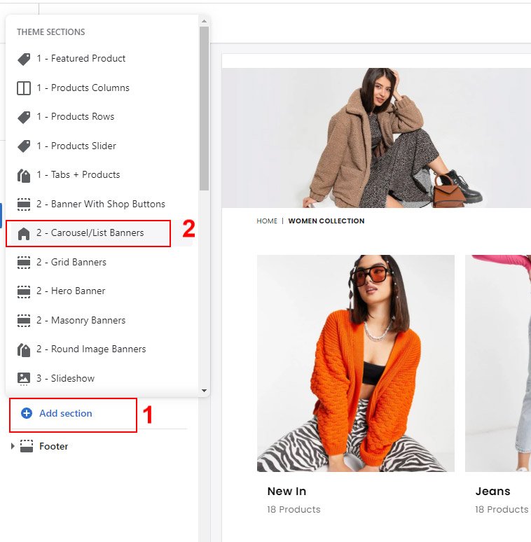 Click On "Add section" and add Carousel/ List banners section to add collections