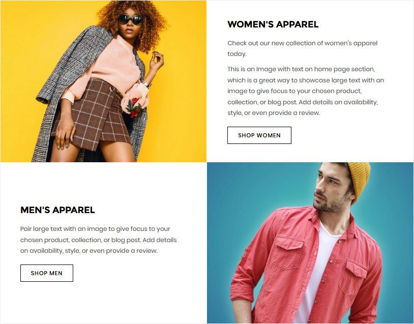 Go to Store Admin >> Online Store >> Customize >> Sections >> Image with text