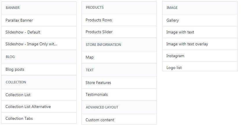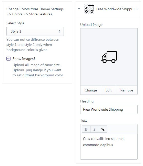 Go to Store Admin >> Online Store >> Customize >> Sections >> Store Features