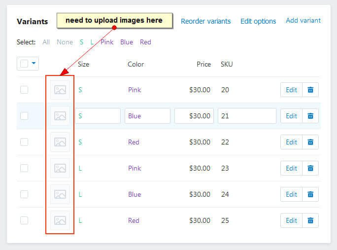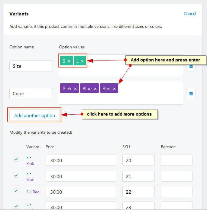 We advise reading and familiarizing yourself with the Shopify Variants. It is an extremely well written and easy to understand.