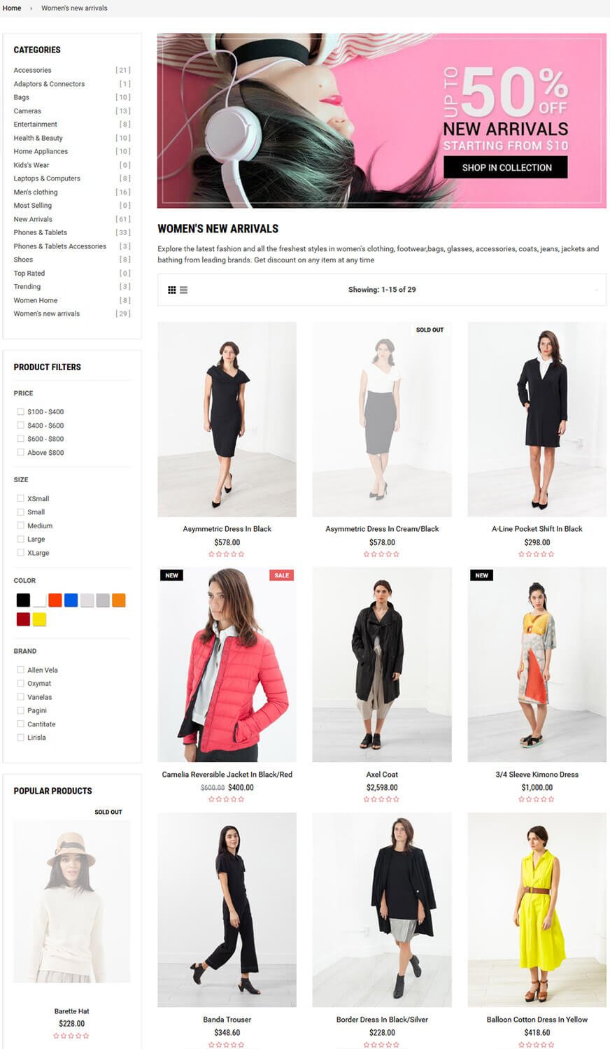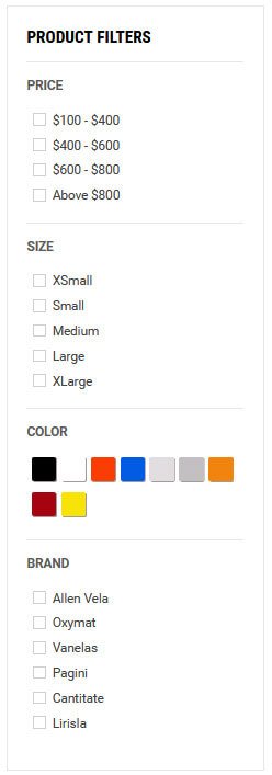 Product Collection page sidebar. Here you can show product category, product filters, static banner, special product and product tags.