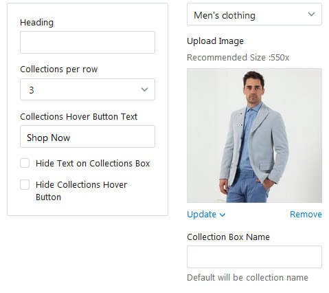 Go to: Online Stores >> Themes >> Customize theme >> Sections >> Collection Box (Collection list)