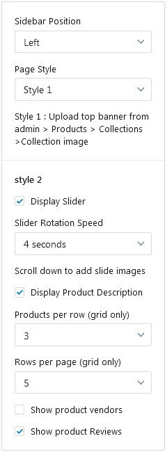 Go to: Online Stores >> Themes >> Customize theme >> Sections (Now click any on any collection from menu appearing on right side) >> Collection Pages