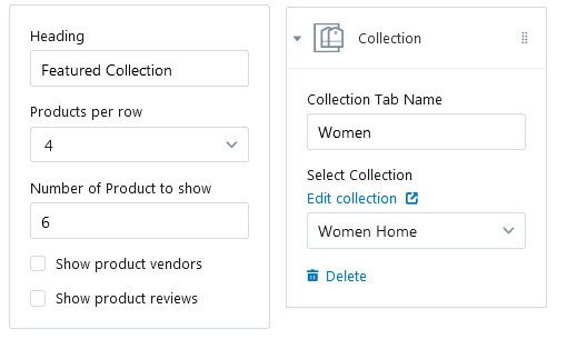 Go to: Online Stores >> Themes >> Customize theme >> Sections >> Featured Collection(Featured Collection Tabs)