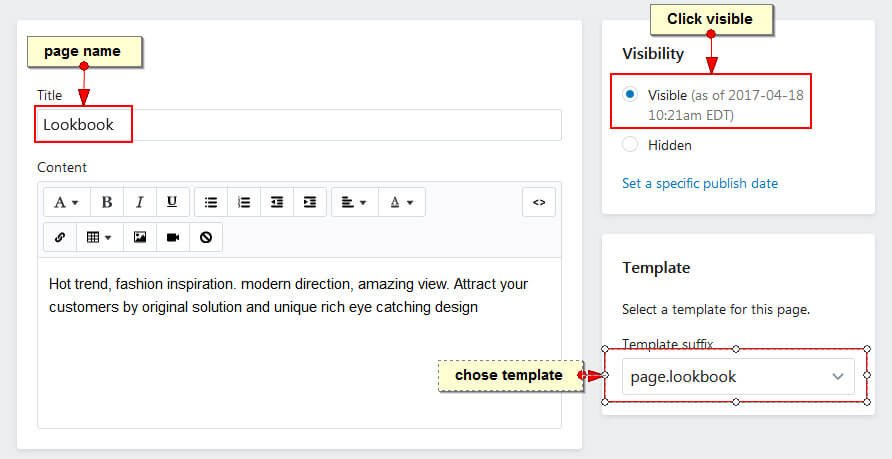 Go to: Online Stores >> Themes >> Customize theme >> Sections (Now click Lookbook from menu appearing on right side) >> Lookbook Page