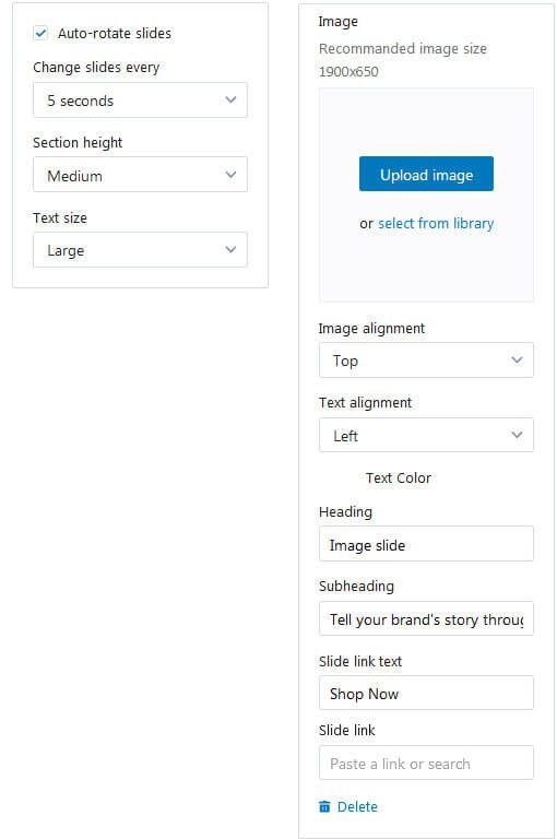 Go to: Online Stores >> Themes >> Customize theme >> Sections >> Slideshow