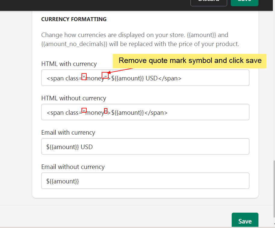 Remove quote marks symbol from class and click save