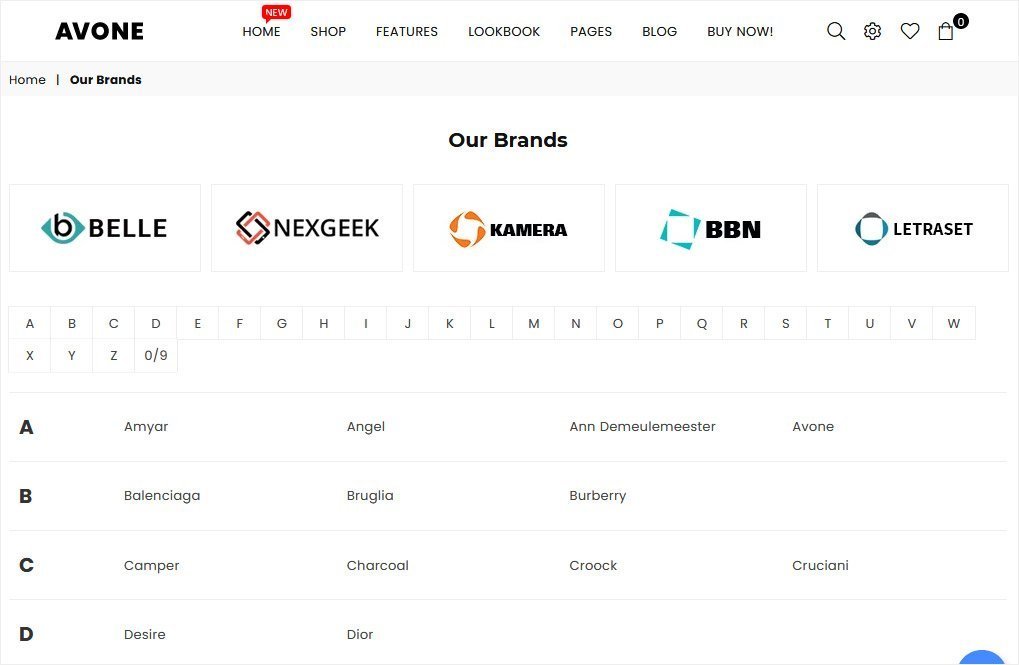 Auto build an A-Z list of all your brands on a single page. Brand page gives your customers