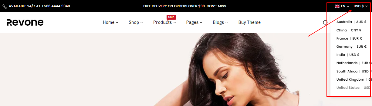 Enable Auto currency switcher: Enable auto changed currency based on country.