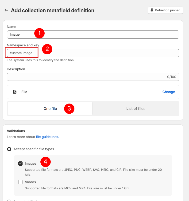 From your shopify store admin > click "Settings" > Metafields and metaobjects > collections > Add definition