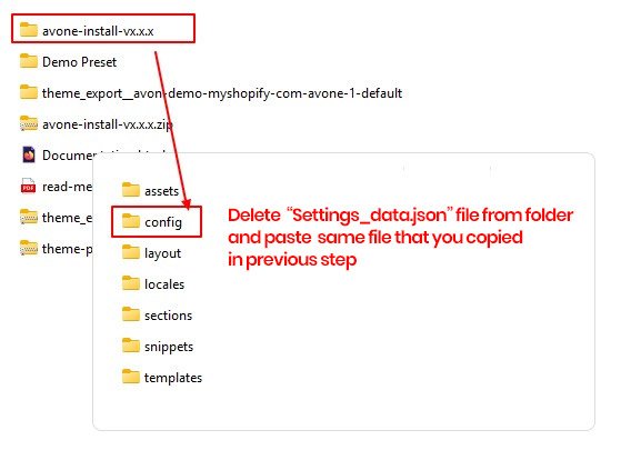 Step 5. Open the current theme folder and copy settings_data.json file from the config folder.