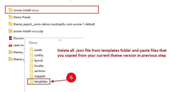 Step 6. Open the current theme folder and copy all .json files from the templates folder.