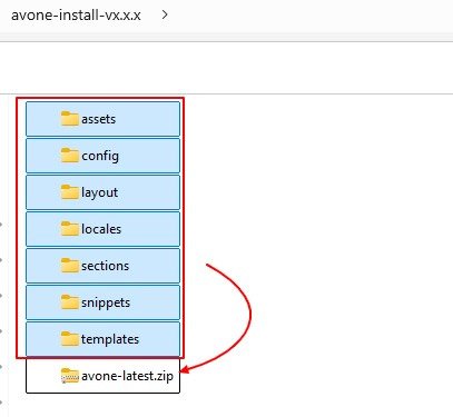 Step 8. Now select all folders in the latest theme folder and compress them into a single zip file. This is the latest theme version. Upload this zip file on your store. Thus, knowing how to update Avone Shopify theme is crucial for maintaining your store.