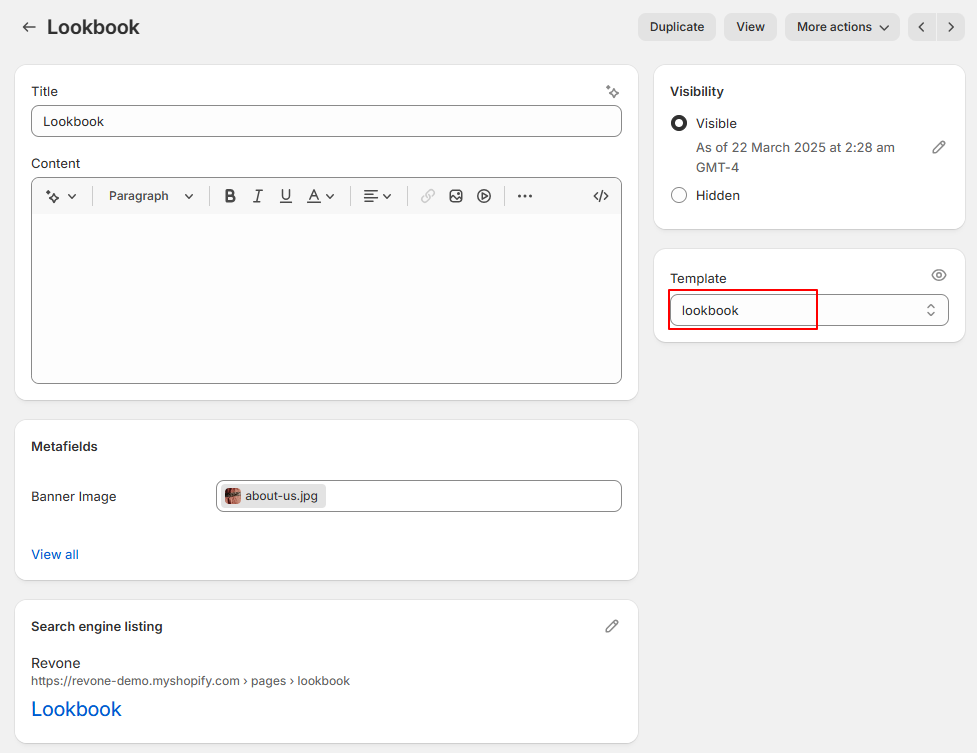 - Enter page title then select lookbook template.