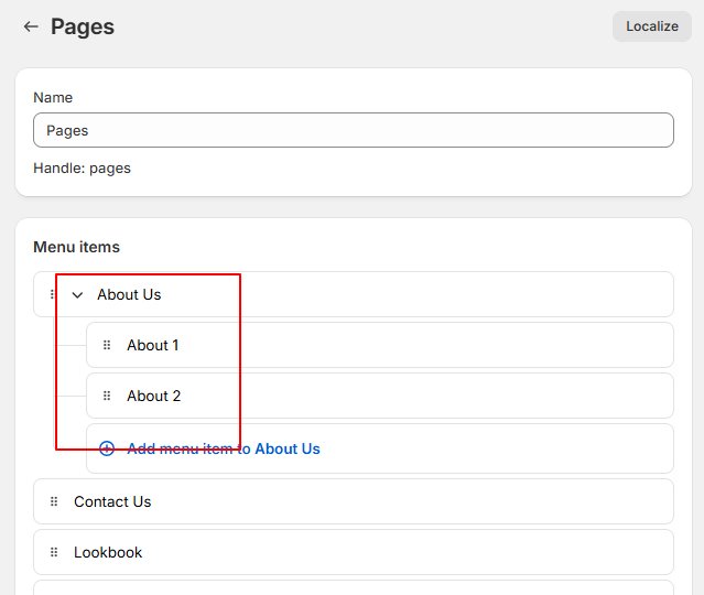 To display dropdown menu on your store, first you need to create menu with nested menu items. Click to know more in detail.