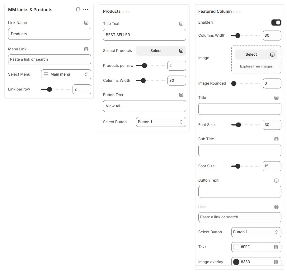 Megamenu Links & Products #